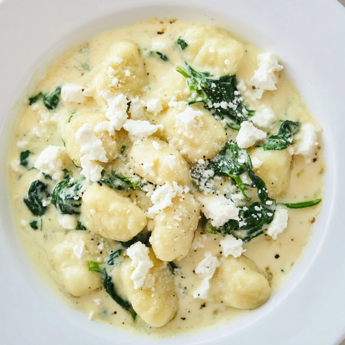 This comforting vegetarian dish features tender potato gnocchi swimming in a luxurious cream-based sauce. The preparation is straightforward: cook the gnocchi until they float, then combine them with sautéed onions, garlic, and fresh baby spinach. The creamy sauce gets its distinctive tang from crumbled feta cheese, while a pinch of nutmeg adds warmth and depth. Ready in under 30 minutes, this European-inspired main serves four beautifully and can be easily customized with different cheeses or lighter cream alternatives.