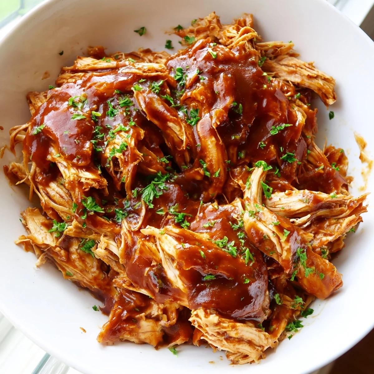 Absolutely. The chicken actually develops more flavor when refrigerated overnight. Store in an airtight container and reheat gently on the stove or in the microwave, adding a splash of water or BBQ sauce if needed.